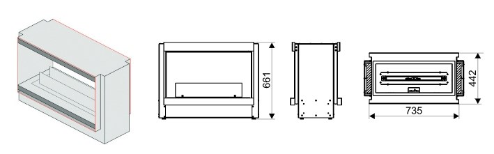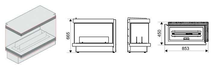 bios-fire®のビルトイン暖炉はレンガ、気泡コンクリート、繊維プラスターボードのいずれかで作られた壁に、煙道や煙突を設けることなく取り付けられます。